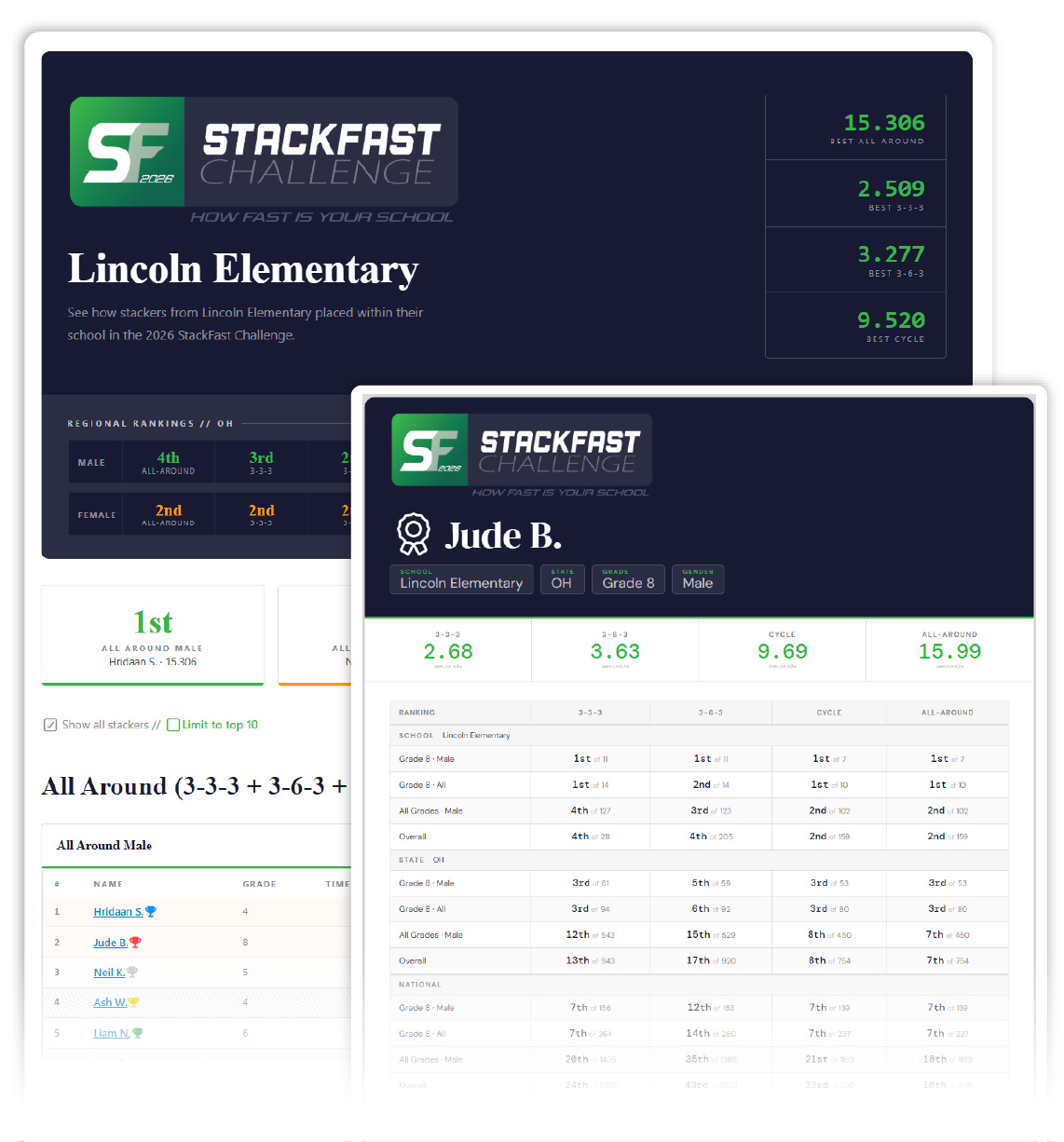 Go over the patterns and identify your school's top stackers in the 3‑3‑3, 3‑6‑3, and/or the Cycle.
